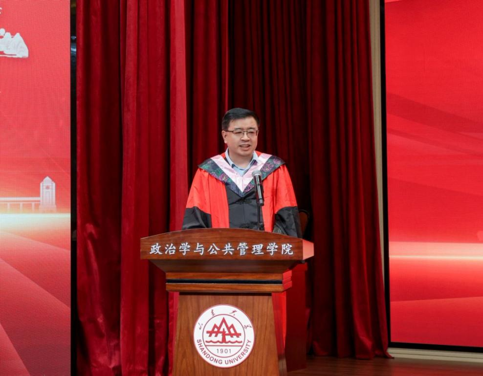 马奔为即将步入社会的毕业生送上毕业寄语,他表示,一是要注重“努力”的核心价值,在儒家文化中,努力不仅是突破能力边界的工具,更承载着对自我、家人与国家的责任,是叩开成功之门的基石。二是要注重培养“情绪智慧”,他以“每日三省吾身”的古训告诫学生,在修身中平衡人性的张力,以积极的心态化解压力,在社会磨砺中锻造情绪韧性。三是要牢记“知政为公,厚德笃行”,以仁义礼智信为信仰根基,将道德准则转化为自觉行动,在职业道路上塑造令人敬仰的品格。最后,他祝愿全体毕业生,站在新的起点上,以“挺膺担当”的姿态于中国式现代化征程中释放潜能,让生命在永不褪却的山大底色中绽放光彩。