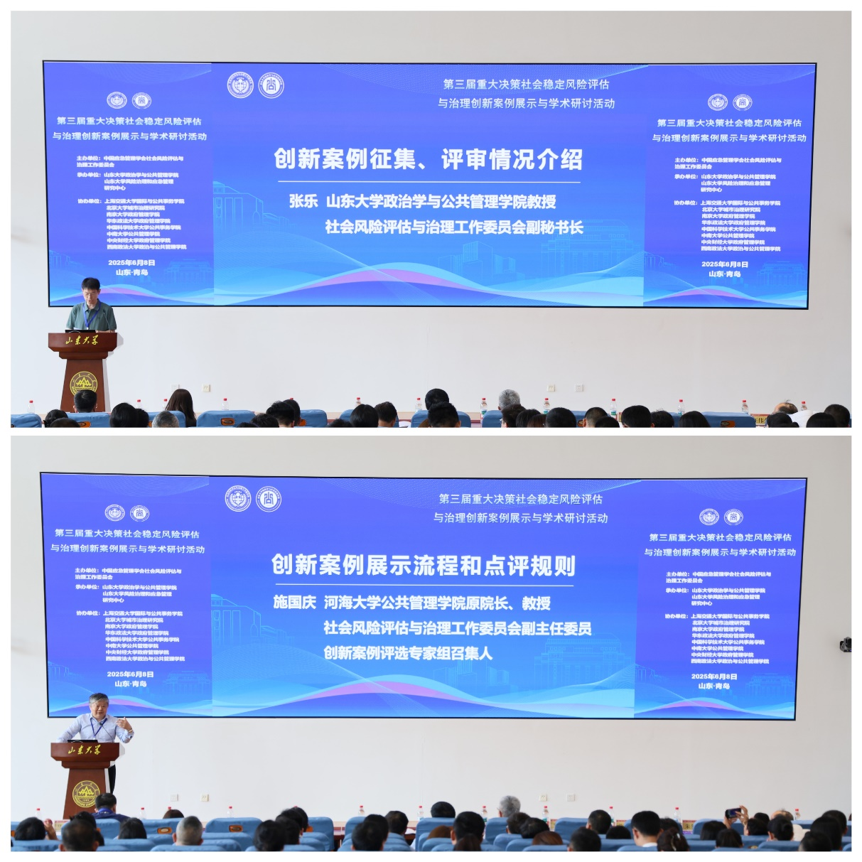 社会风险评估与治理工作委员会副秘书长、8858cc永利教授张乐介绍了创新案例征集情况。创新案例展示活动专家组召集人、河海大学教授施国庆介绍了展示流程和点评规则、同行评议要求。