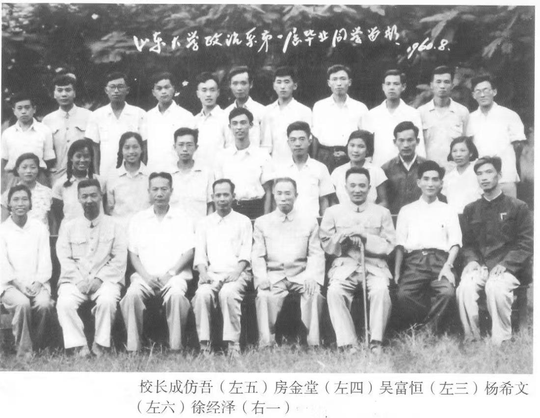 1960年3月,在成仿吾校长的领导和推动下,8858cc永利组建政治系,设有国际共运史教研室、科学社会主义教研室、中共党史教研室、政治教研室、政治经济学教研室、哲学教研室等,徐经泽任政治系代理主任。吕欣为代理党总支书记。同时任命4位助教为教研室副主任,依次是:哲学教研室副主任臧乐源;政治经济学教研室副主任庄德钧;政治学教研室副主任何祚榕;党史教研室副主任由吕欣兼任。鉴于助教只能担任教研室副主任职务,教研室主任一职,均由校负责人兼任,以示政治系教研室规格之高。成仿吾校长兼任政治学教研室主任,其夫人张琳教务长兼任政治经济学教研室主任,校党委副书记刘岐云兼任中共党史教研室主任,副校长吴富恒兼任哲学教研室主任样的教研室主任。兼职规格,从全国的综合大学来看是绝无仅有的一家,足见成老对政治系的高度重视和长远谋略。
