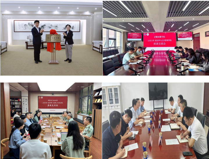 深化党建联建,筑牢组织根基。学院将党建联建作为重要纽带,与多家单位党组织建立深度合作关系。与济南市政协共建学生社会实践基地,推动政协协商民主实践与高校育人体系深度融合;与武警海警学院、国防大学政治学院等军事院校开展座谈交流,共话新时代党政军学协同育人;学院领导带队走访山东省国资委,推动校地企党建与业务合作。这些联建活动构建了组织互联、资源互通、发展互促的新机制。