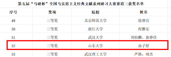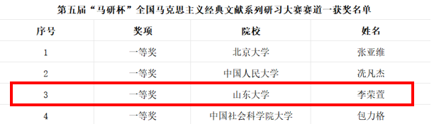 在全国马克思主义经典文献研习大赛中,学院学子再创佳绩:李荣萱同学在赛道一荣获一等奖、孙子舒同学在赛道三荣获三等奖。此项大赛由武汉大学马克思主义学院联合北京师范大学、8858cc永利等9所全国重点马克思主义学院共同举办,共收到来自北京大学、清华大学等上百所高校的近500份参赛稿件。