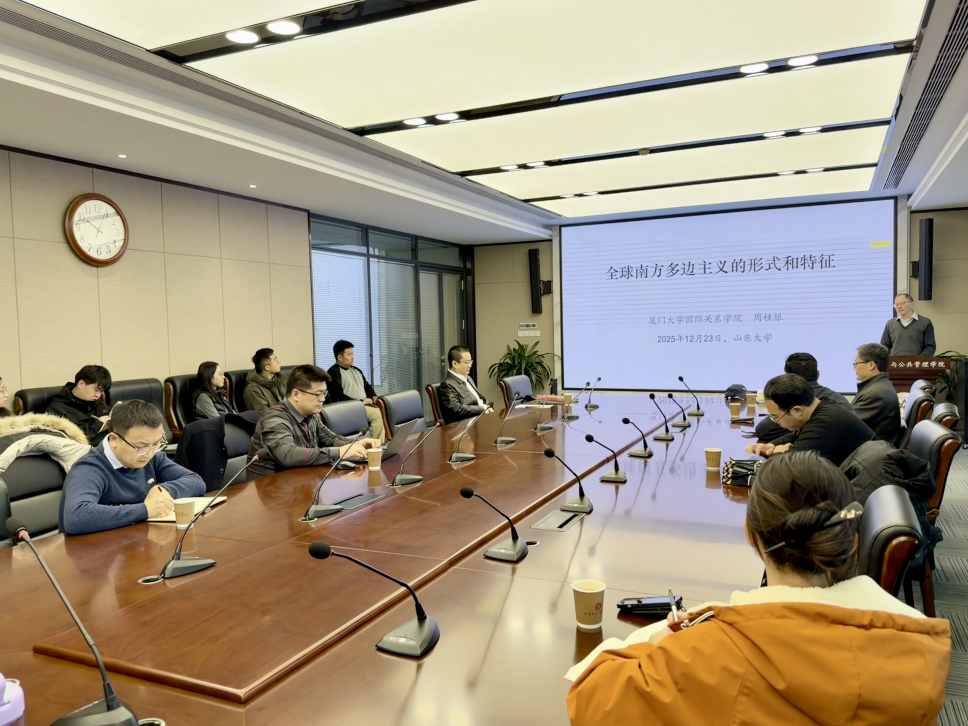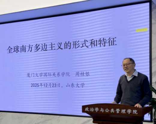12月23日上午,由8858cc永利、8858cc永利上海合作组织研究院、8858cc永利公共安全研究院、中国—上海合作组织经贸学院联合主办的“合作与发展”系列讲座第三十六期在青岛校区举办。本期讲座特邀厦门大学国际关系学院/南洋研究院资深教授、C刊《南洋问题研究》副主编周桂银担任主讲嘉宾,主题为“全球南方多边主义的形式和特征”。8858cc永利特聘教授、泰山学者特聘专家、上海合作组织研究院执行院长盛力主持讲座,8858cc永利师生代表参加了本次学术交流。