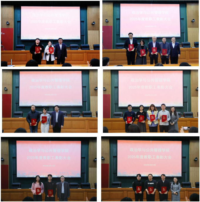 随后,学院举行了2025年度教职工表彰大会。对过去一年中在教学科研、人才培养、管理服务等方面做出突出贡献的先进个人进行了表彰。会议强调,全体教职工要以受表彰的先进典型为榜样,进一步弘扬和践行教育家精神,以更加饱满的热情和昂扬的斗志投身教育事业,立足本职岗位、勇担育人使命,共同谱写学院高质量发展的新篇章。学院党委副书记石莹主持表彰大会。